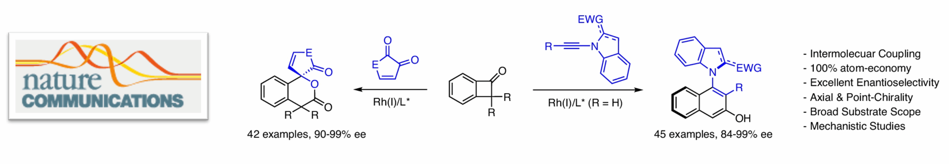 1. Catalytic asymmetric intermolecular [4 + 2] annulation of benzocyclobutenones with Alkynes and activated carbonyls via C—C activation.